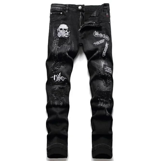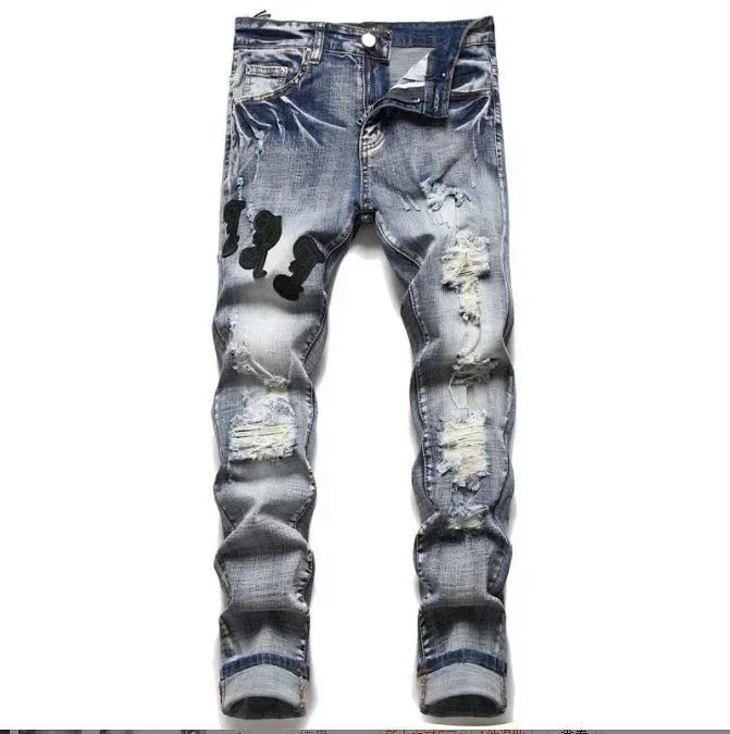 Home > AMIRI new foreign trade style fashion blue ripped patch embroidery elastic mid-waist slim-fit men's jeans (5 styles)-2432