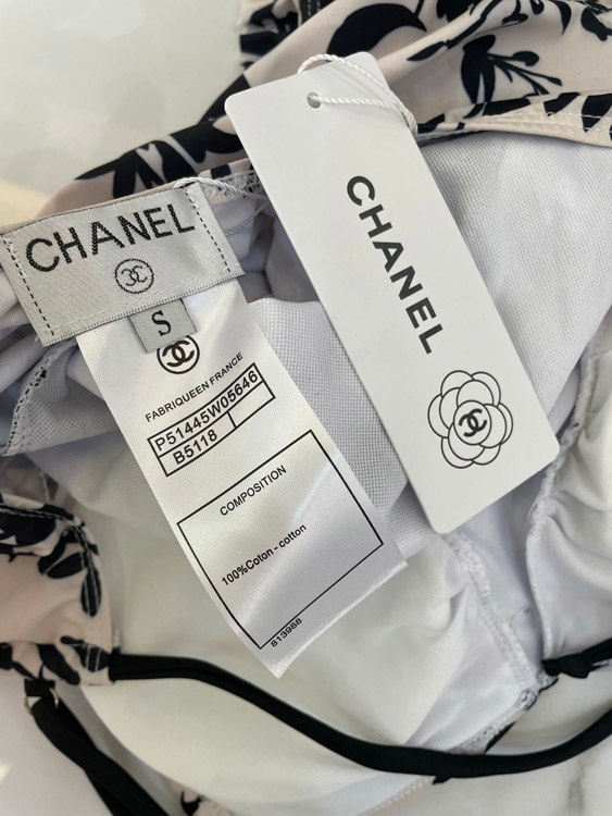 Chanel Black and White Floral One-Piece Swimsuit-6440