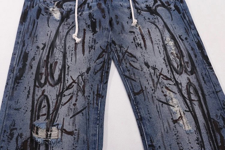 Home > Hellstar Splatter Graffiti Monkey Washed Blue Casual Loose Straight Jeans-4946