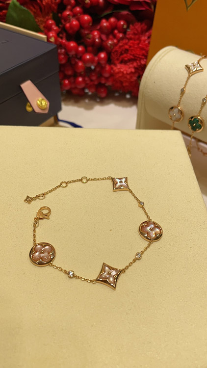 Home > Louis Vuitton LV Pink Mother-of-Pearl Floral Four-Leaf Clover Rose Gold Bracelet-3728