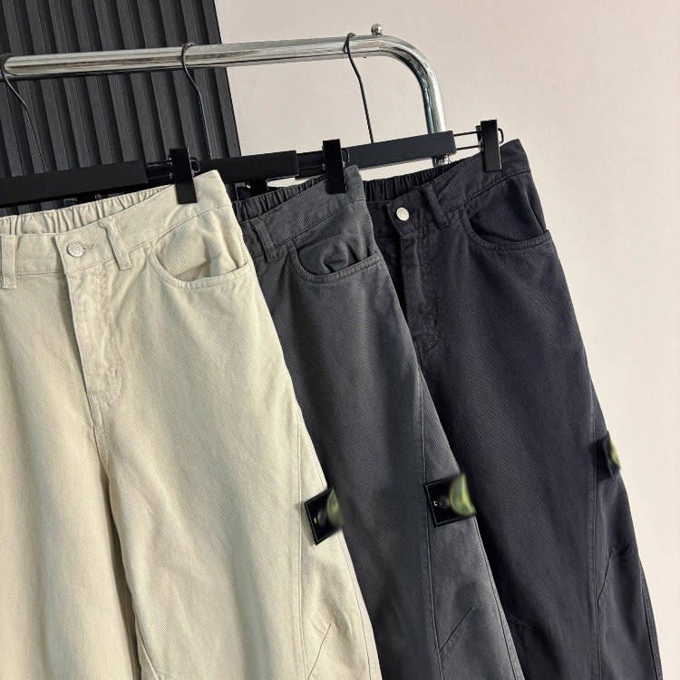 Stone Island compass logo embroidered low-rise curved leg cargo pants-5261