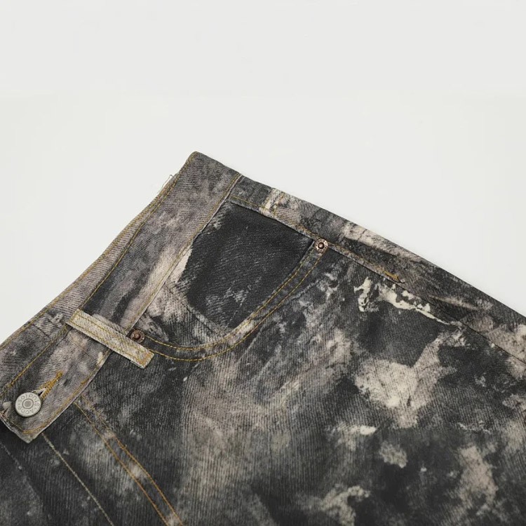 AC style inkjet graffiti distressed loose wide-leg casual jeans-4920