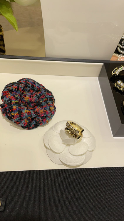 Chanel double misaligned gold double C ring-3961