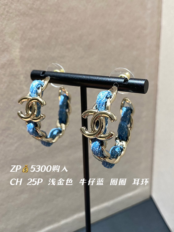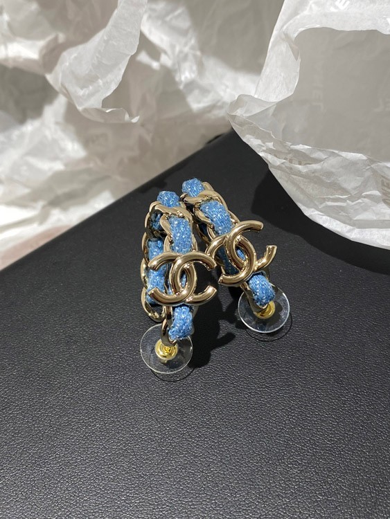 Chanel Light Gold Denim Blue Hoop Earrings-3595