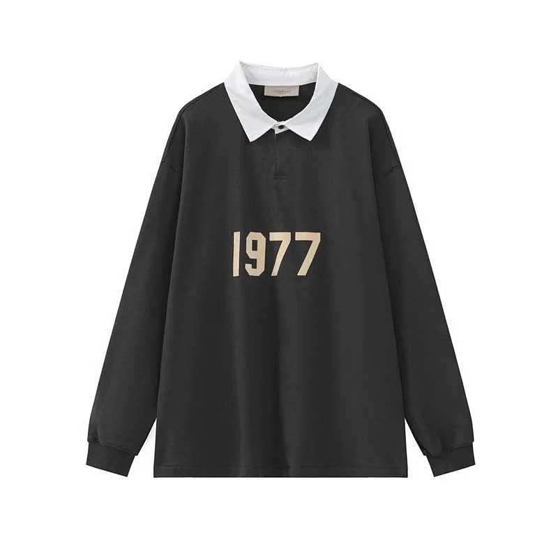 Home > ESSENTIALS Printed Polo Collar Color-Blocked Pullover Terry Sweatshirt-5214