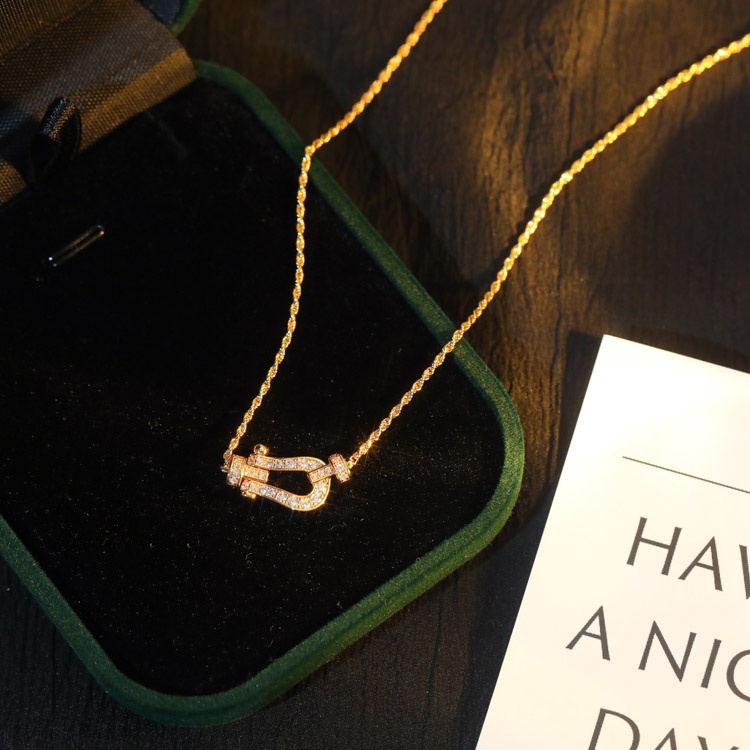 Feidan gold and silver horseshoe half diamond necklace-3774