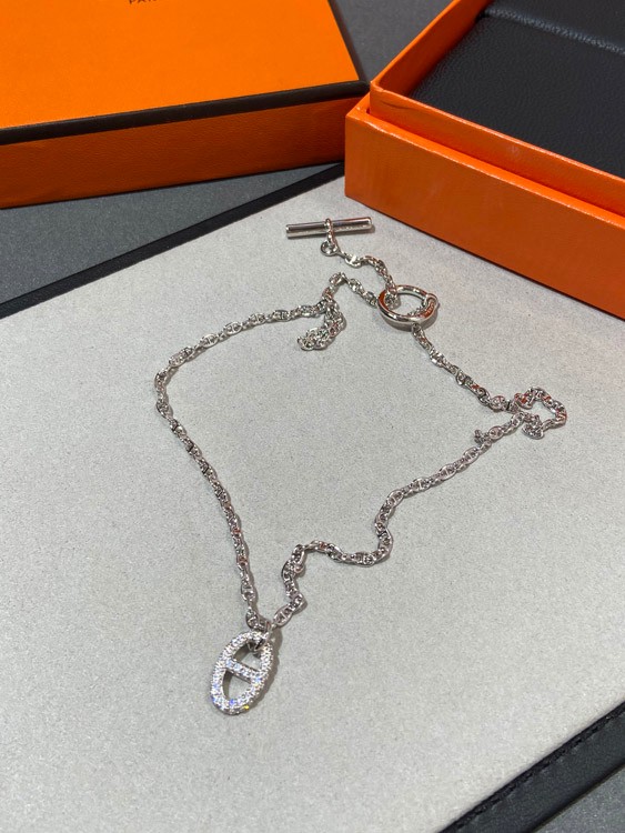 Hermes pig nose full diamond necklace-3613
