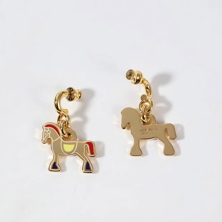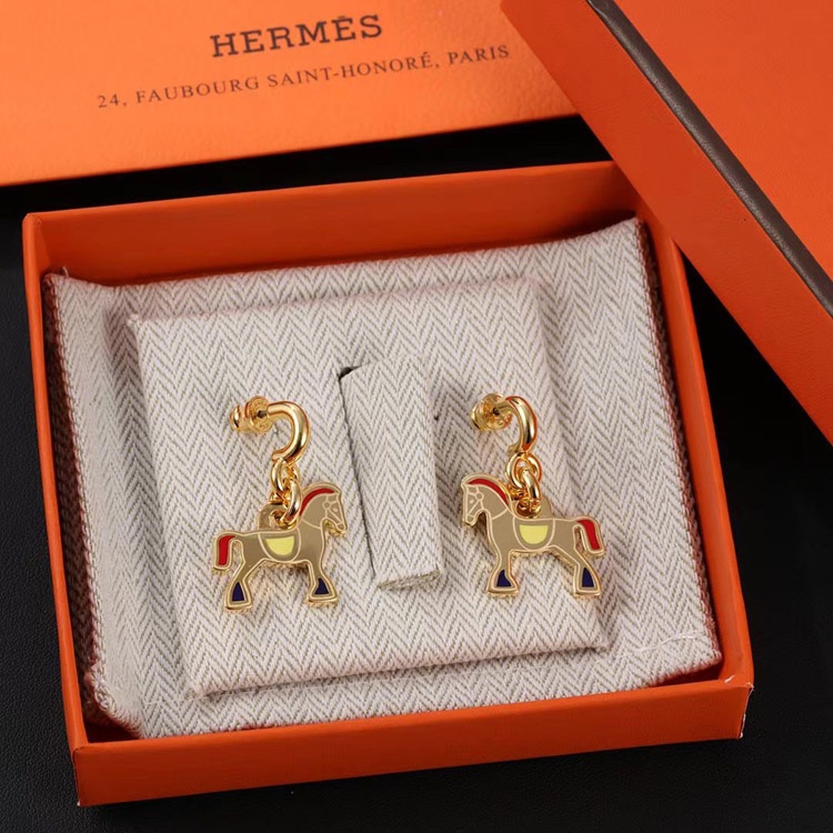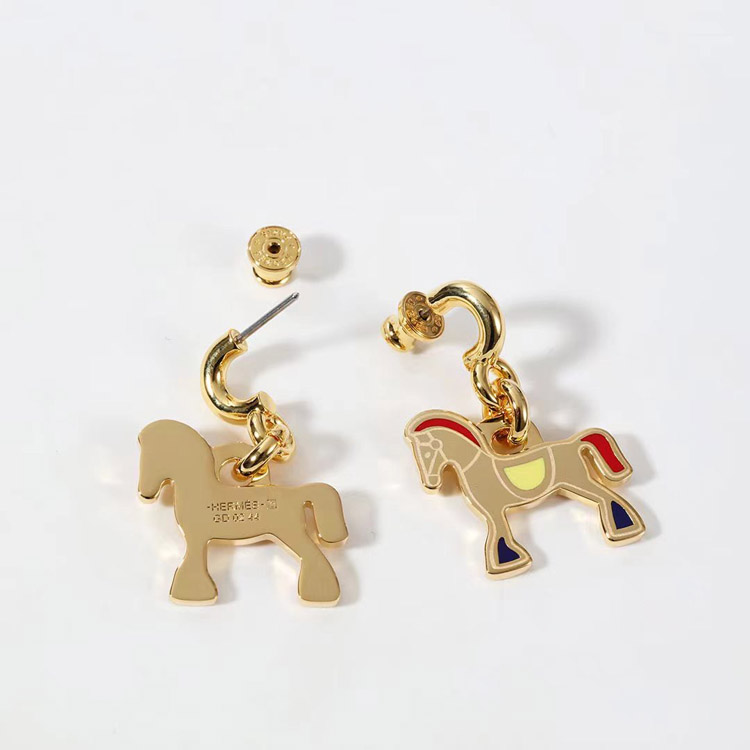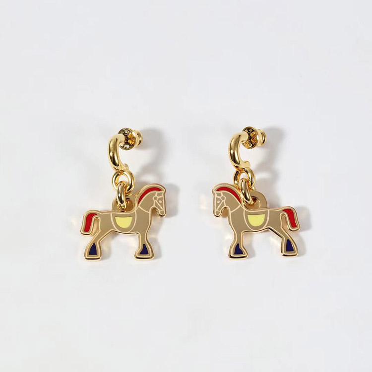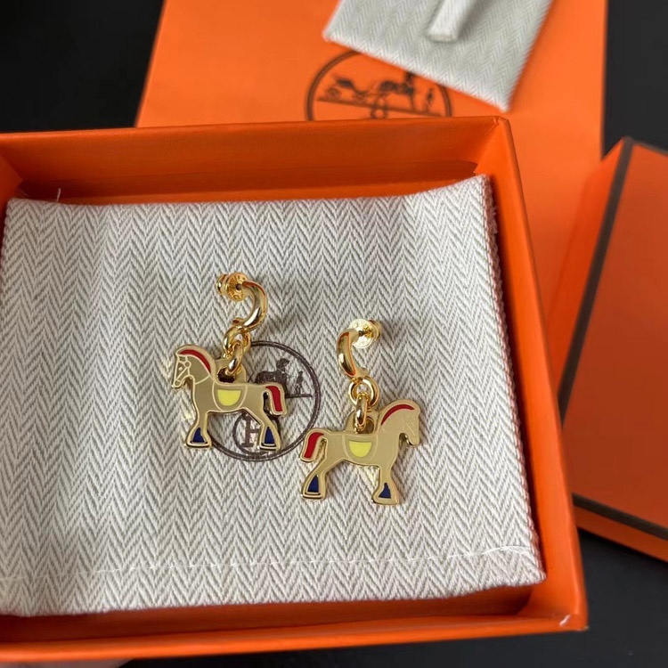 Hermes red enamel earrings-3712