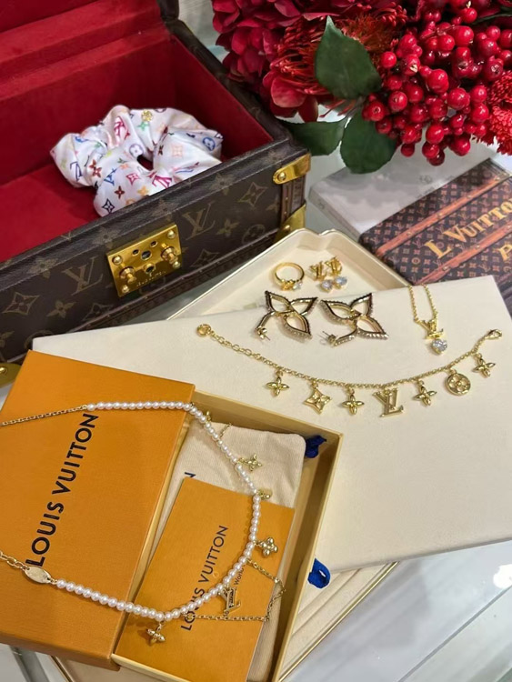 Louis Vuitton LV Gold Letters Old Flower Pearl Necklace-3721
