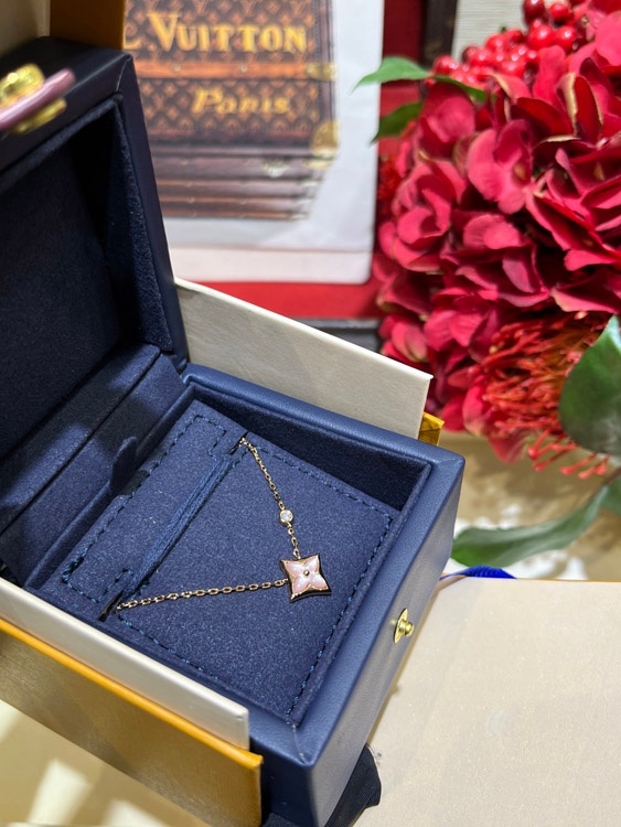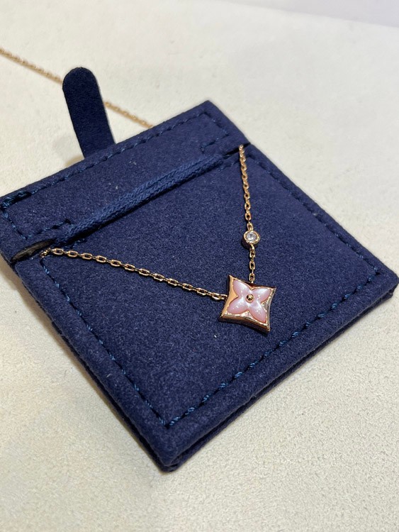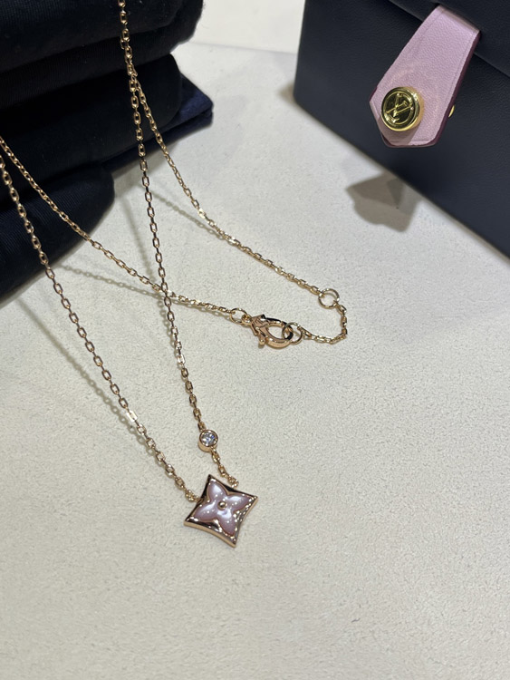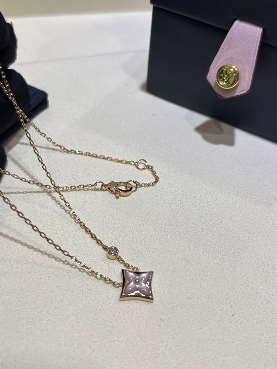 Home > Louis Vuitton LV Pink Mother-of-Pearl Floral Diamond Rose Gold Necklace-3726
