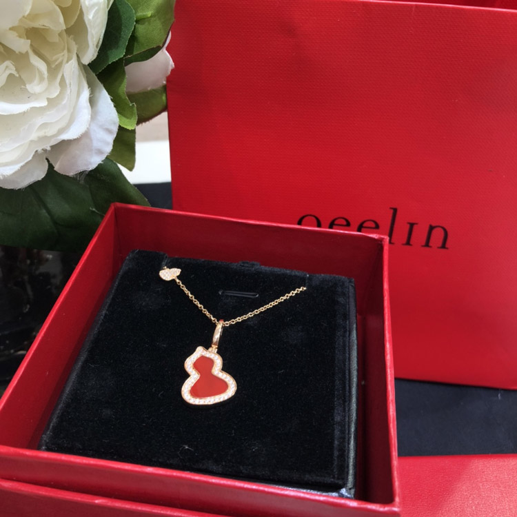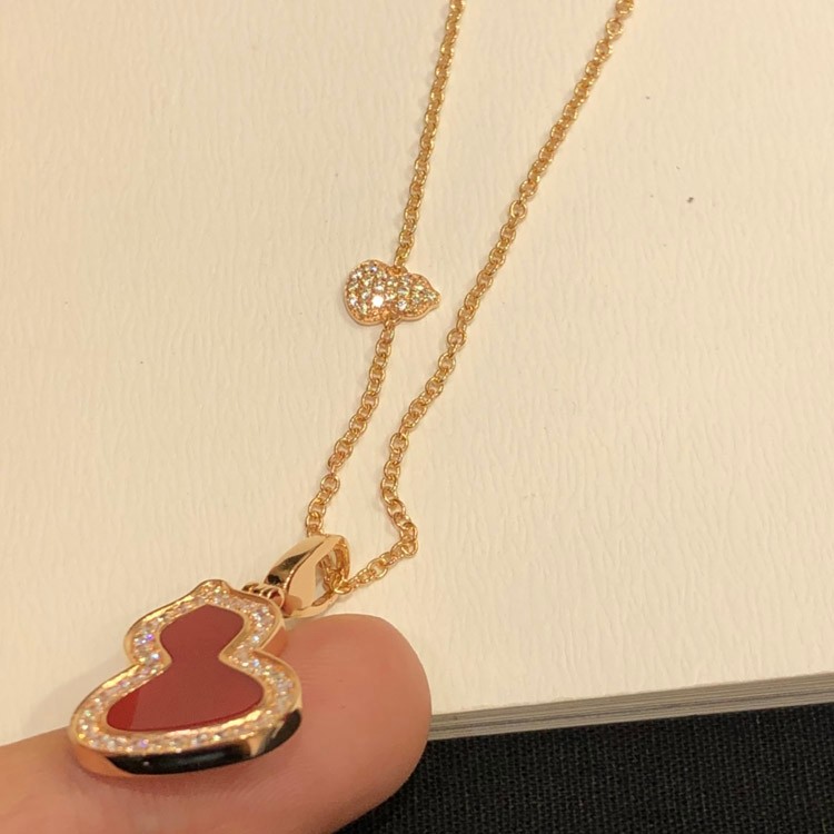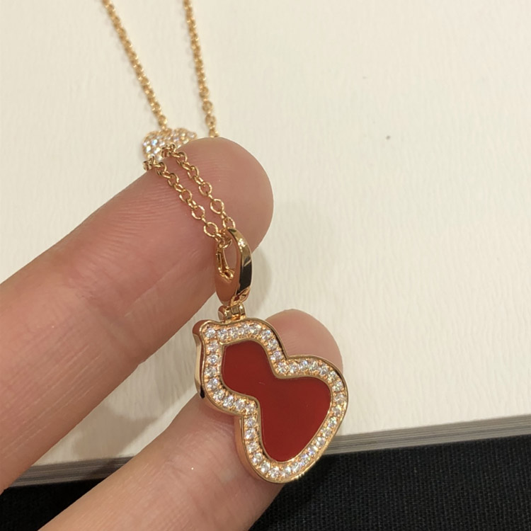 Qeelin Diamond and red obsidian double gourd necklace-3884