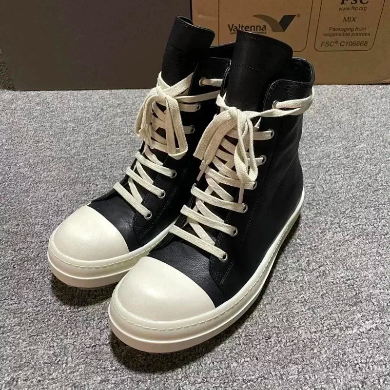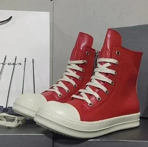 Home > RICK OWENS/RO Edfu leather semi-gloss finish high-top fashion sneakers-2945