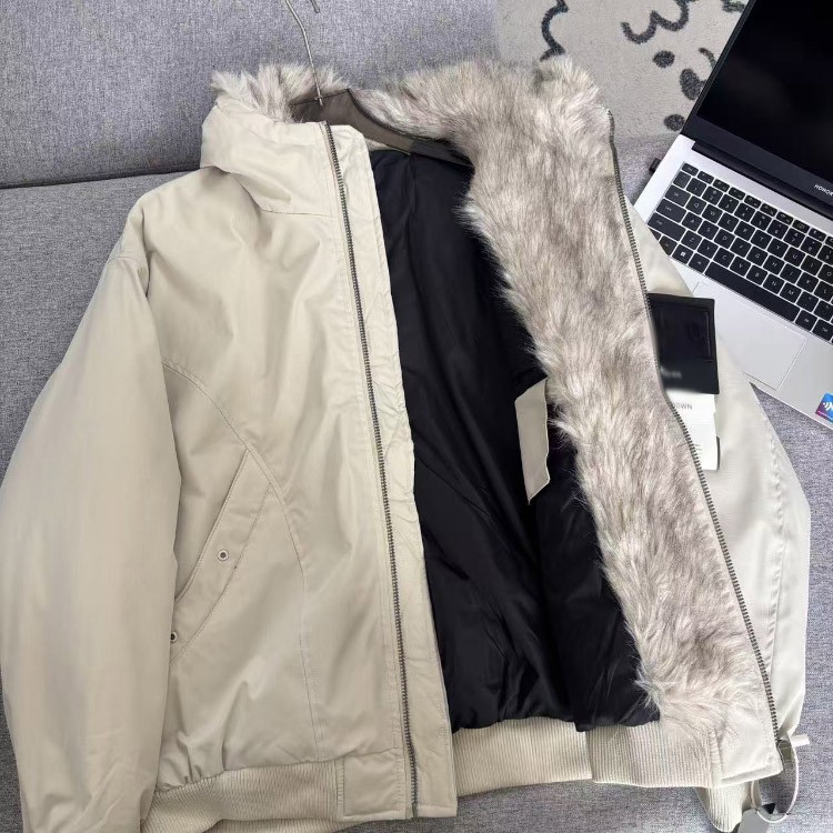 Stone Island warm hooded bomber jacket with fur collar-5188